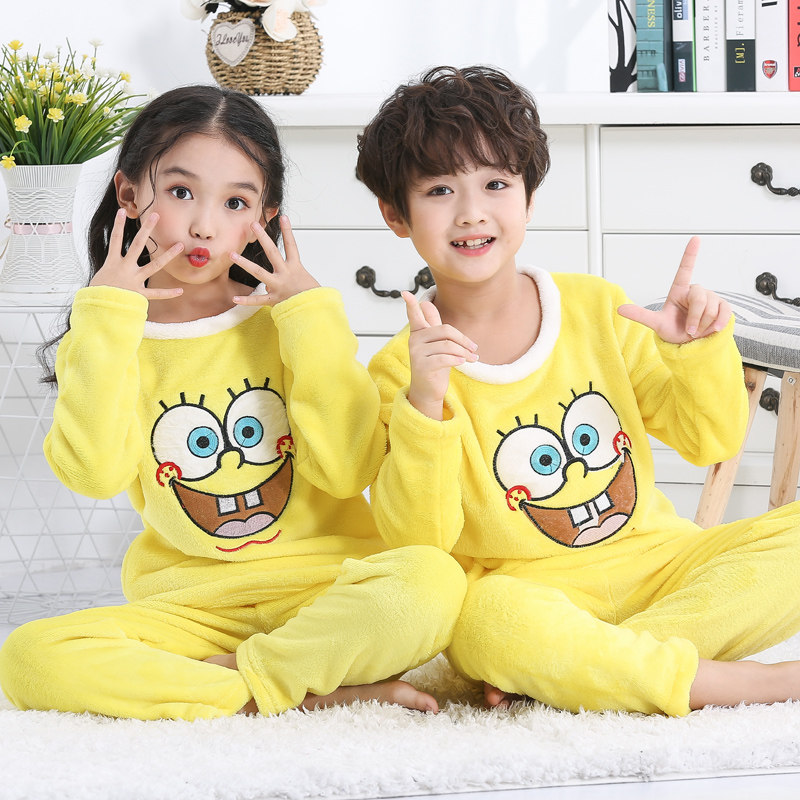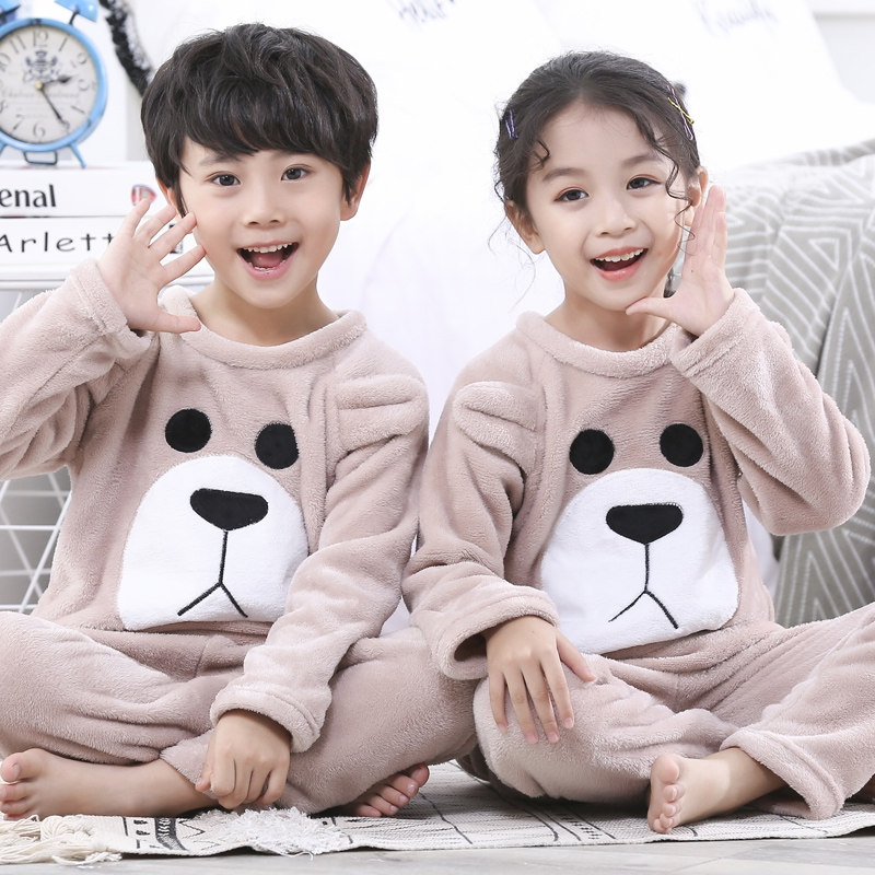 Children's pajamas girls flannel autumn winter thin boys coral velvet baby home clothes children cartoon suit