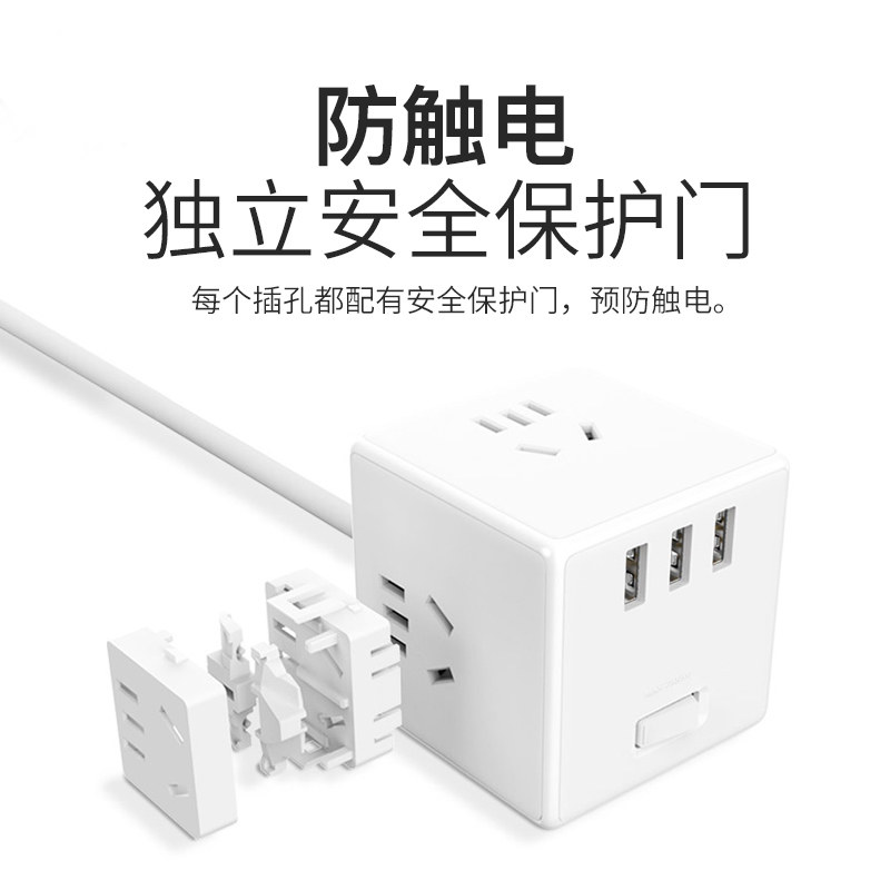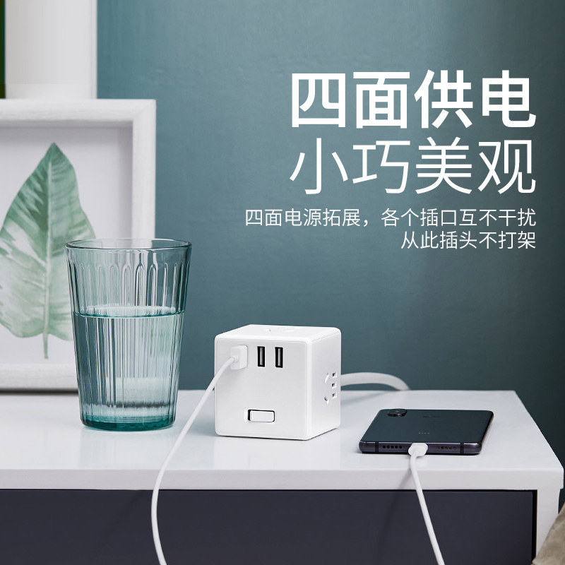 Mijia Rubik's Cube Converter Millet Extension Cable 3-hole USB Charging Extension Cable Wireless Terminal Board Multifunctional Socket