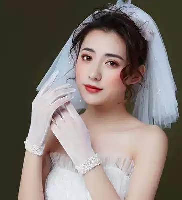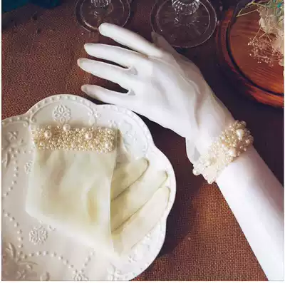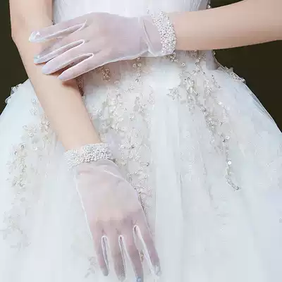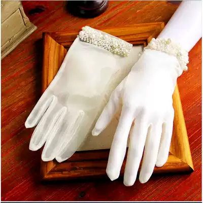 Korean wedding gloves 2019 new lace bride gloves wedding short gloves sunscreen female Pearl White