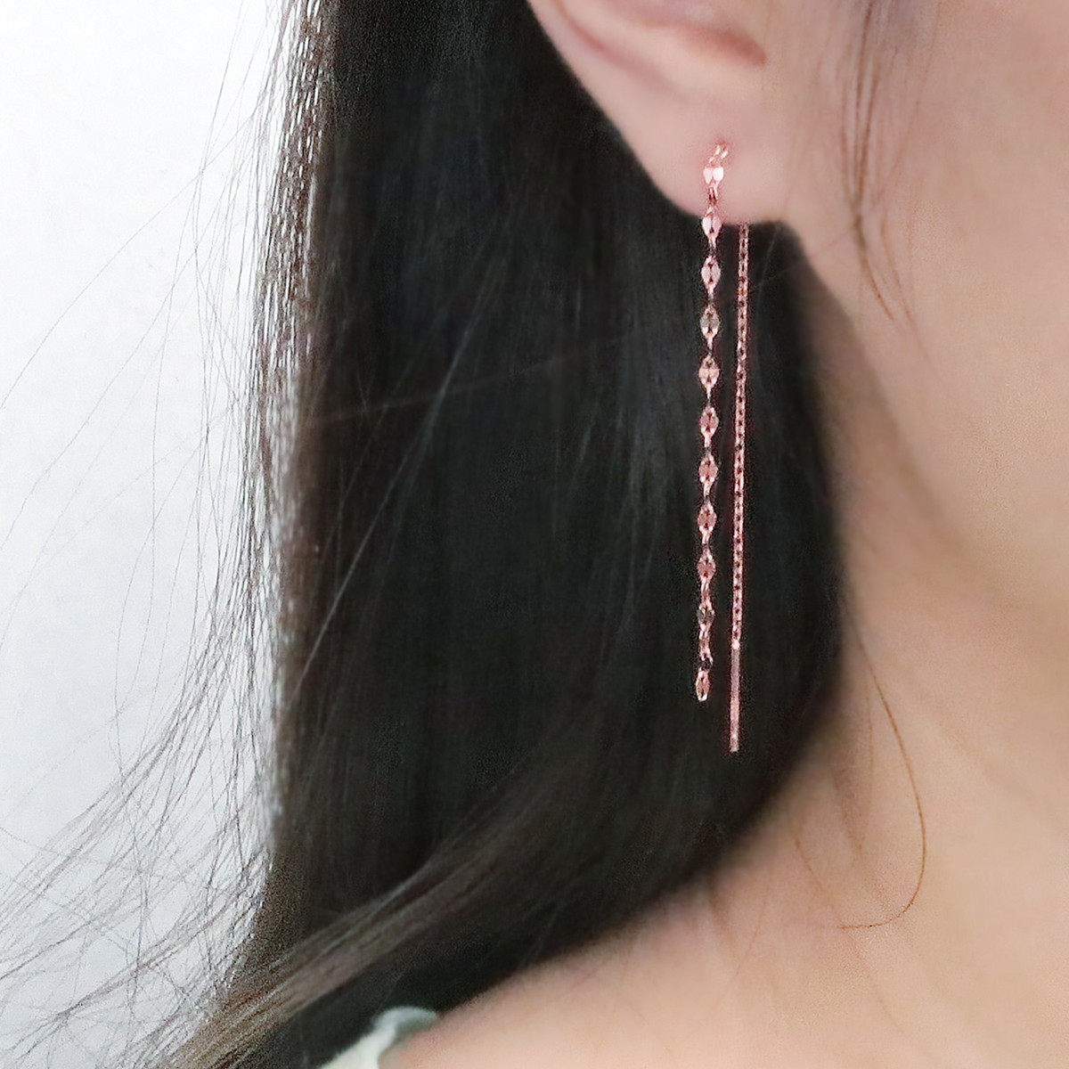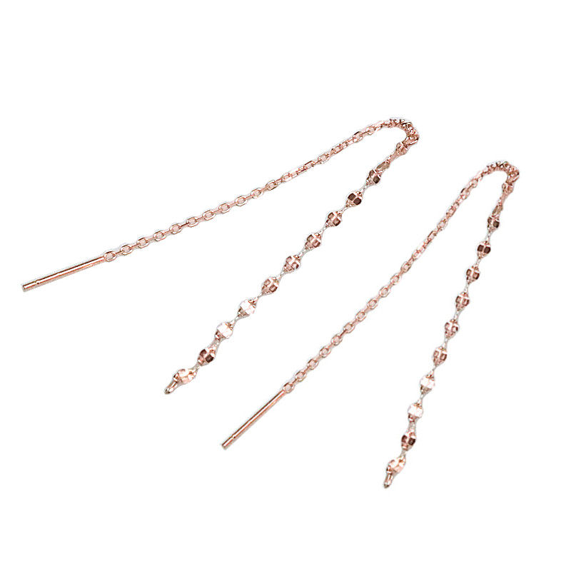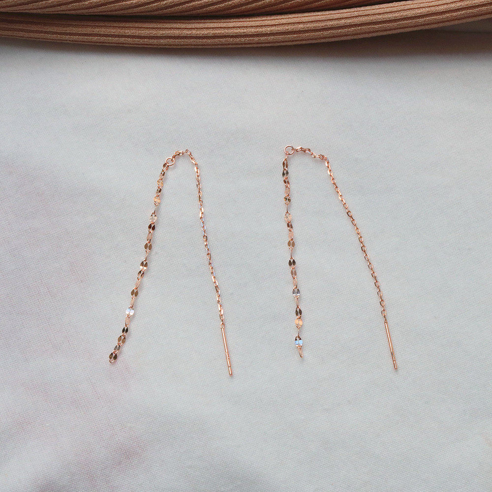 Han's Pure Silver Plated Rose Gold Earrings Purple Gold 14K Elegant Knowledge Long Version Flow Suo Glossy Super Shiny Personality Earmy
