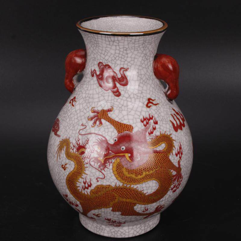 Qingqian Lung Pink Clouds Dragon Tattoo with Nose Fu Cylinder Bottle Ancient Play Antique Porcelain Folk Old Stock Collection Pendulum