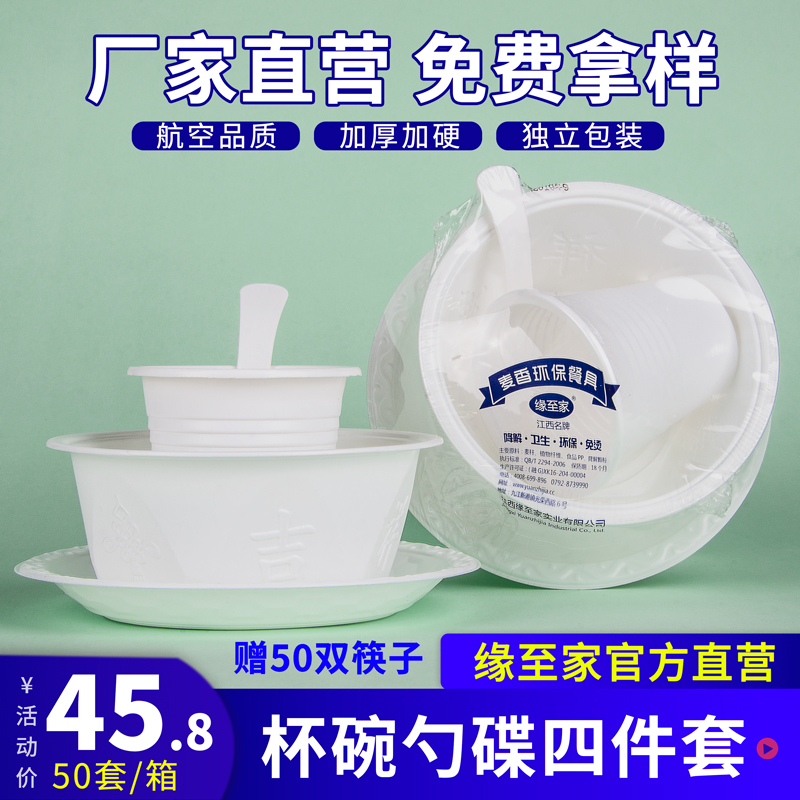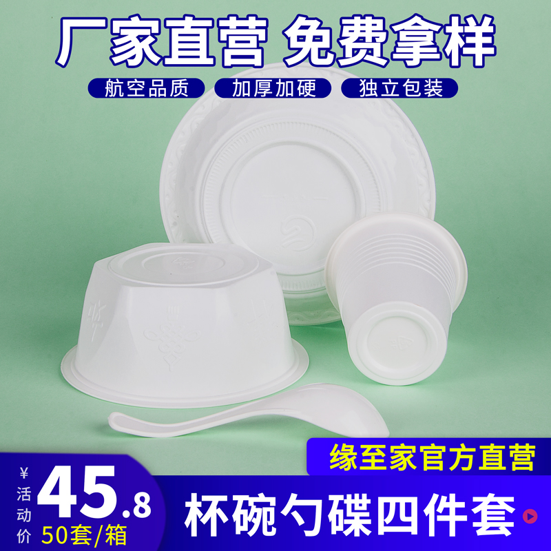 Disposable tableware bowl chopsticks set four-piece plastic combination wedding banquet hotel with aviation crystal dish bowl
