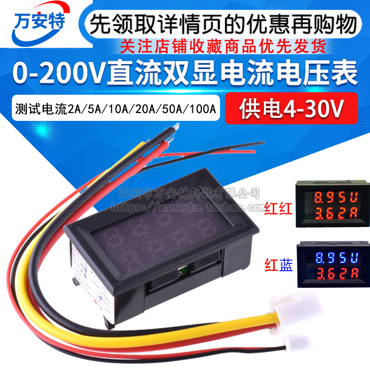 DC0-200V 2A 5A 10A 20A 50A 100A DC dual display digital LED current and voltmeter