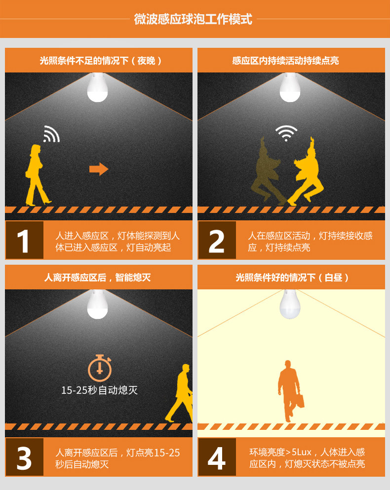 Foshan lighting LED bulb E27 screw mouth 5W wise control floor balcony human microwave induction LED ball bubble light