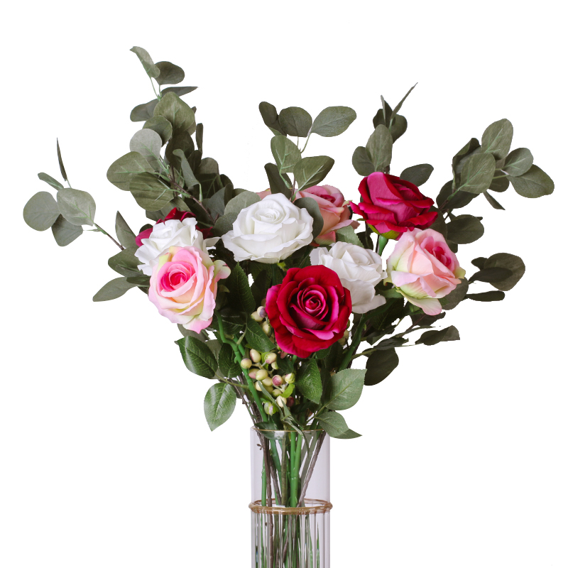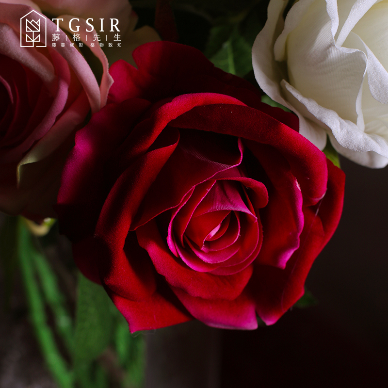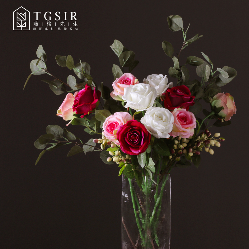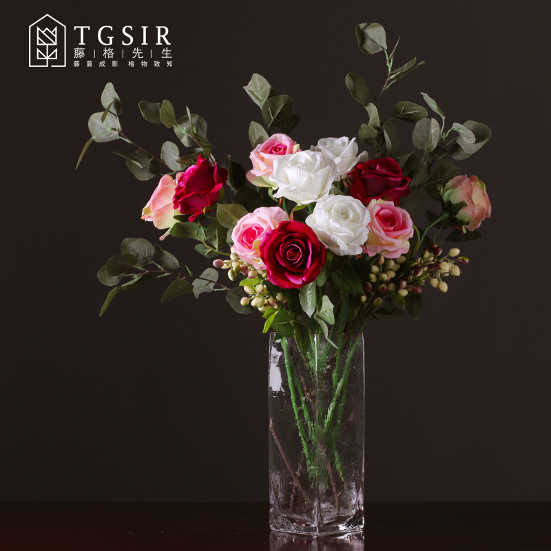 European style rose bouquet imitation flower single flannelette fake flower living room TV cabinet tea table table high vase flower arrangement