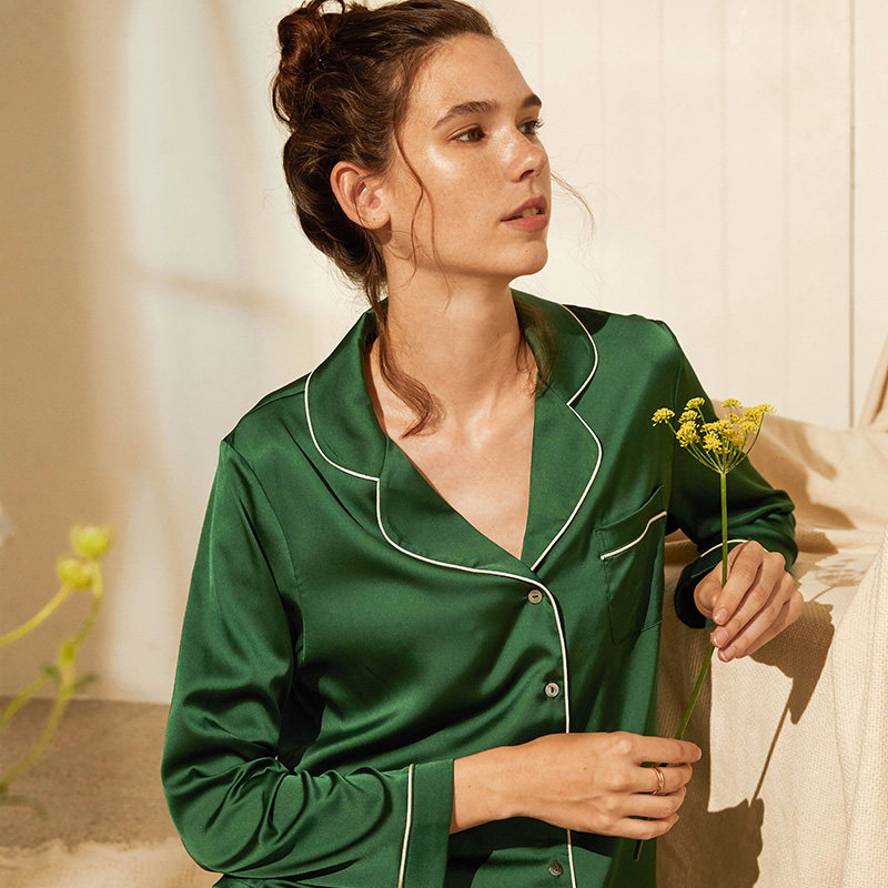 Venus Blessings Spring Summer Thin style Long sleeves casual pyjamas suit can be worn outside wearing loose house Two sets of women