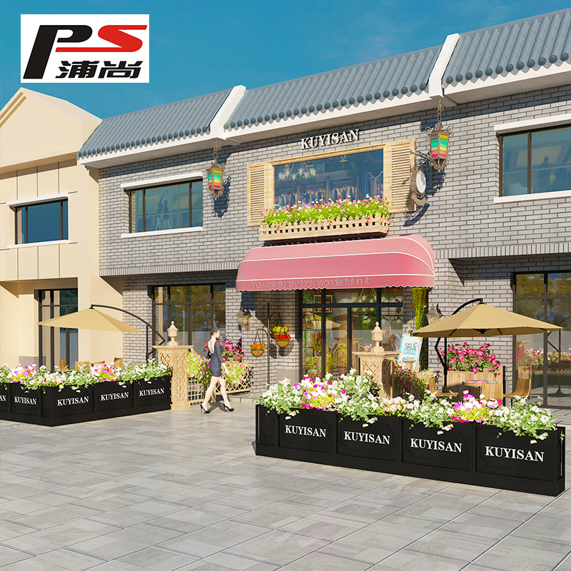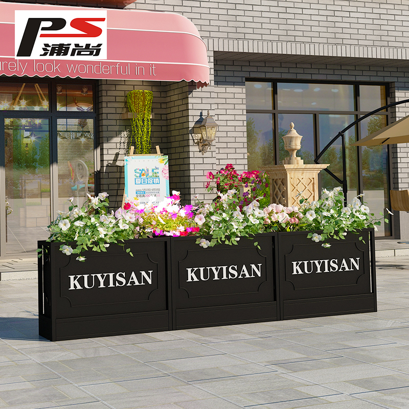 Outdoor Iron Art Flower Case Custom Square Municipal Road Flower Altar Real Estate Sample House Display Center External Swing Flower Groove Fence Partition