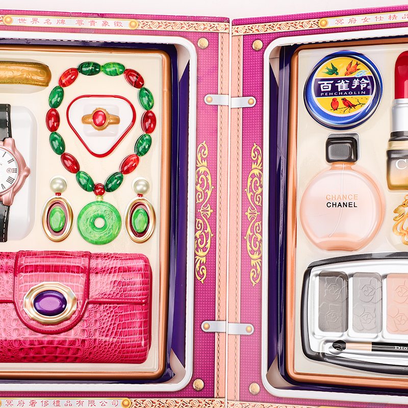High-end Stereo Lady Boutique Jewelry Folding Box Suit First Accessories Box Sacrificial items Upper grave Tomb Burger Paper Zum