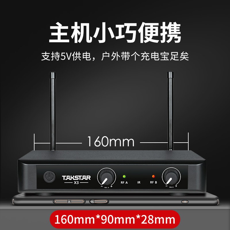 Takstar Wins X3 Wireless Micromic One Drag Two U segment Home KaroKTV singing Stage Outdoor Chair Wedding Professional Speech Conference Moving Circle Anti-Howl Called HEAD GRIP MICROPHONE