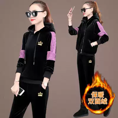 Korean fashion gold velvet sports set Winter Women 2020 New plus velvet padded hooded sweatshirt three sets