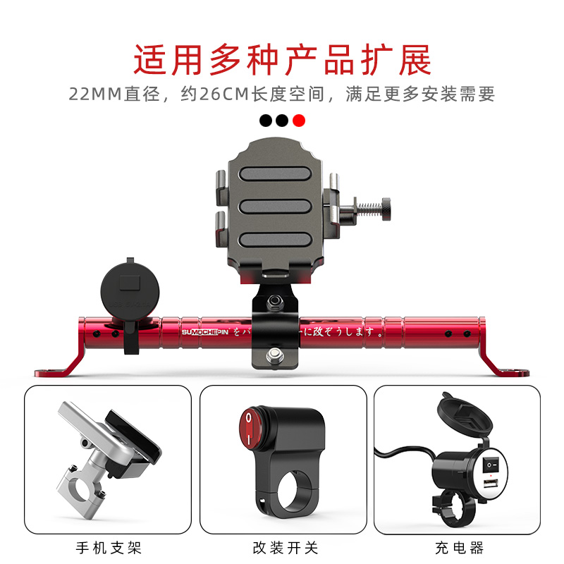 Electric pedal Motorcycle rear mirror modification crossbar balance rod multi-function navigation reinforcement expansion bracket