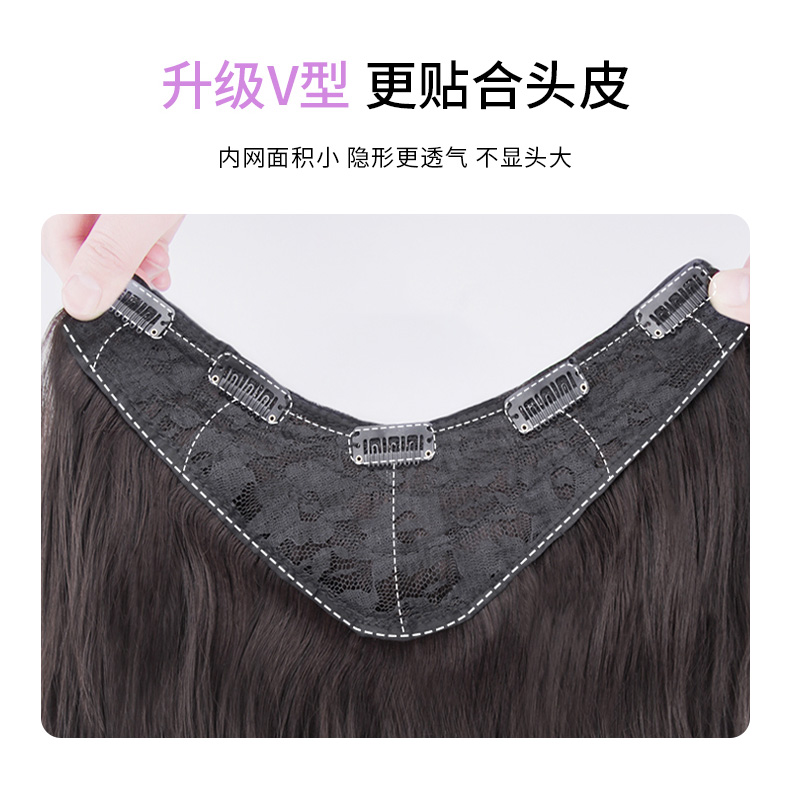 Wig women's long curly hair big wave fluffy hair extension one piece seamless invisible U-shaped long hair straight natural hair extension