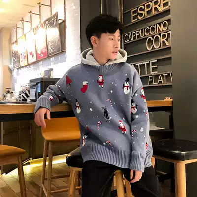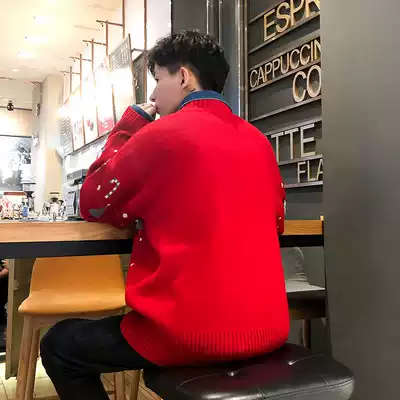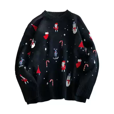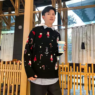 Christmas theme New Year Red Elk sweater male ins Hong Kong trend loose Korean trend couple sweater