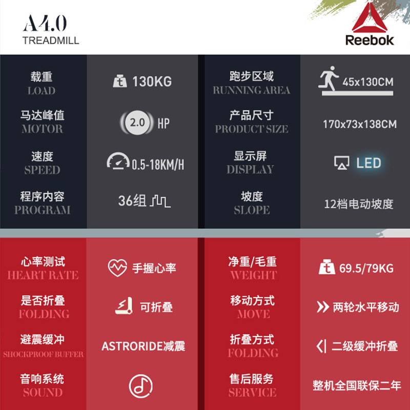A4 0t home treadmill collection plus purchase to send Reebok gift bag