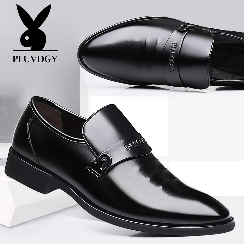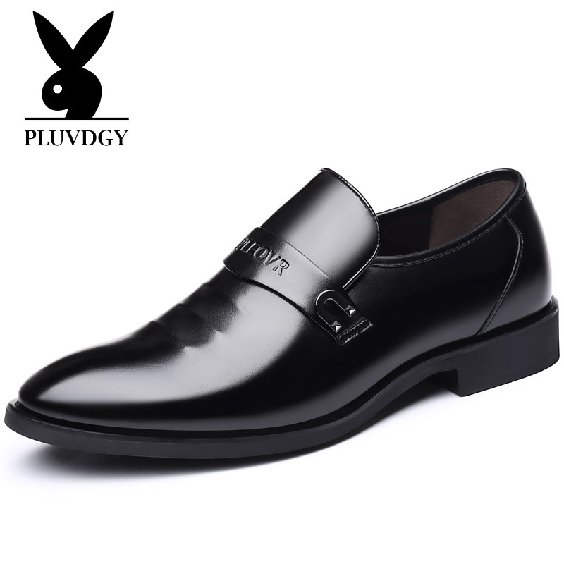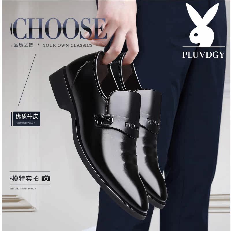 Leather shoes men's autumn business positive for real leather Inn men's Korean version casual black pointed set foot inside heightening men's shoes