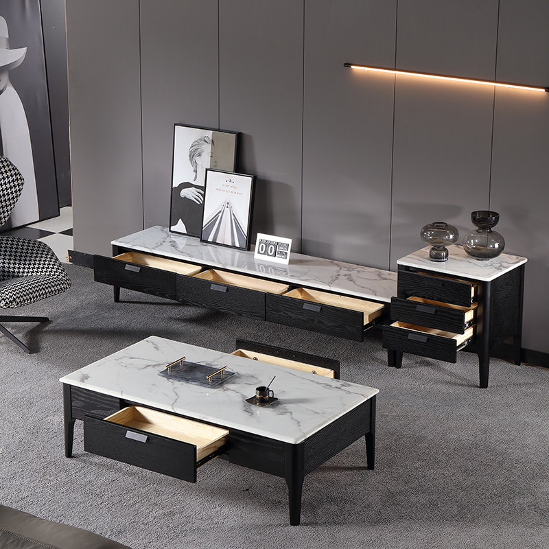 Nordic marble coffee table TV cabinet combination Simple modern living room size apartment type storage light luxury solid wood coffee table