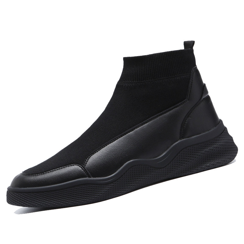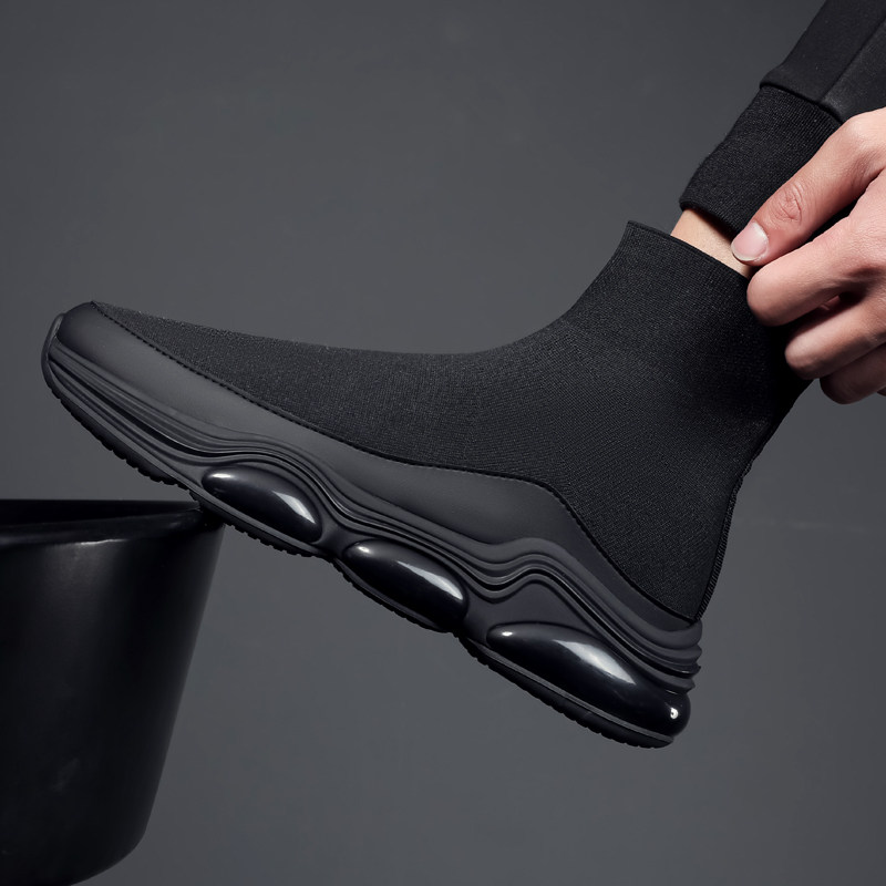 Flying woven shoes men's Korean version tide autumn new breathable high-top shoes men's socks shoes knitted shoes black all-match men's shoes socks