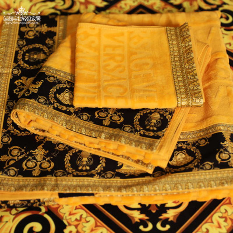 European-style luxury pure cotton thickened palace royal printing bath towel model dressing room beauty salon towel three-piece set