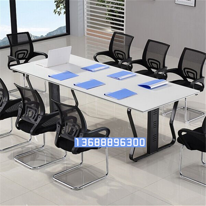 Black White Splicing Conference Table And Chairs Composition 8 People Company Training Table Brief Modern Negotiation Table Multiperson Long Strip Table