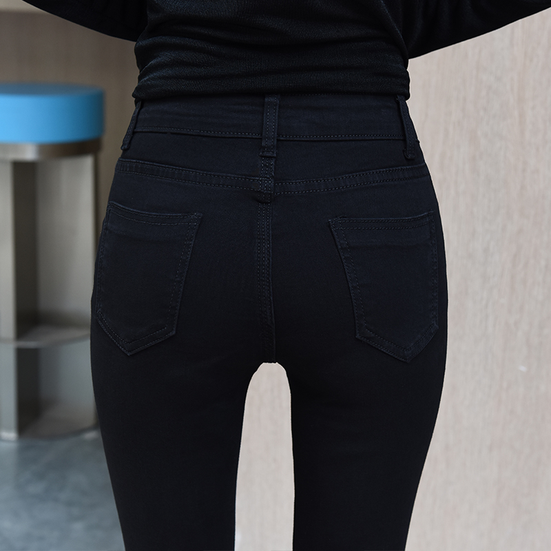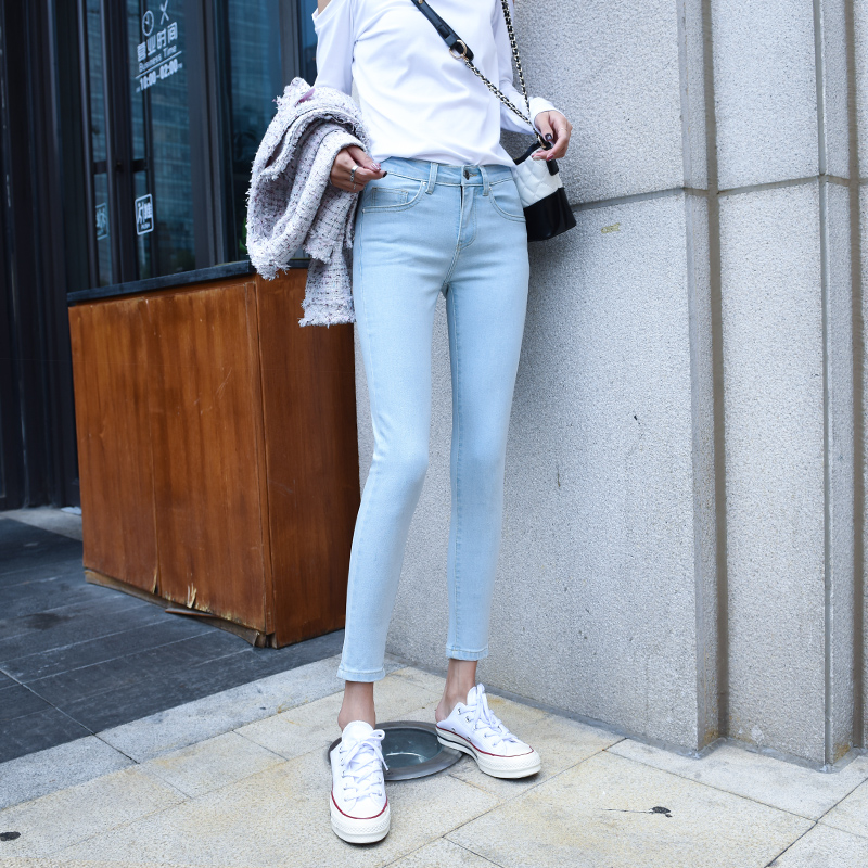 Plus velvet jeans women's high waist thin light-colored elastic thickened winter tight feet 2019 new eight points nine points