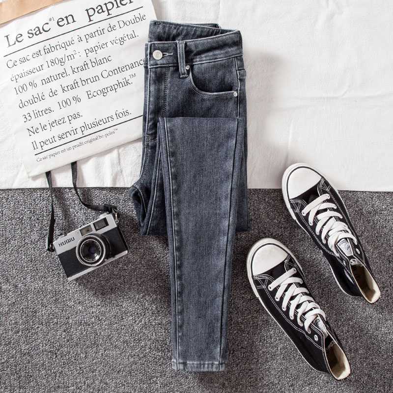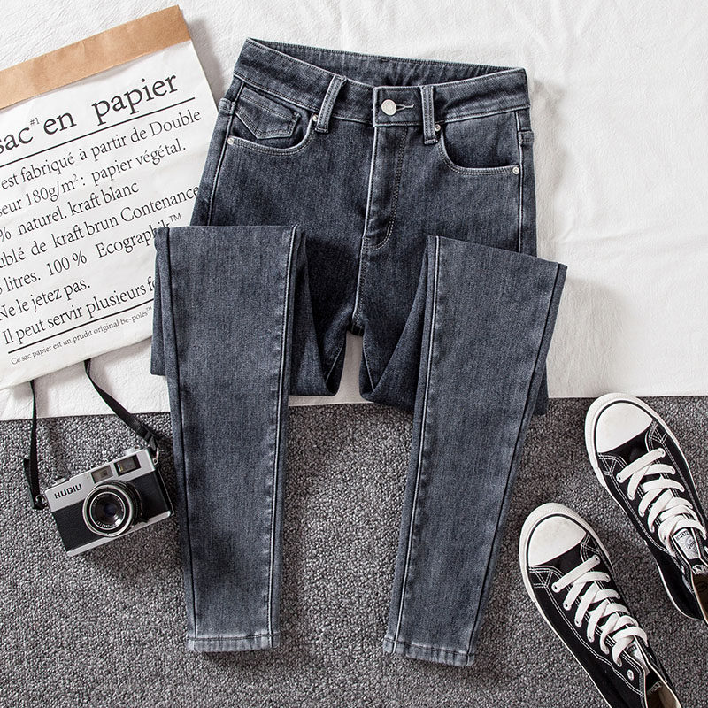 Glint Jeans Women Dress Winter High Waist Long Pants 2022 New Korean Version Thickened Warm Repair Body Display Slim Smoke Pipe Pants