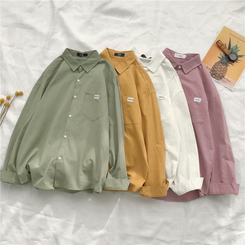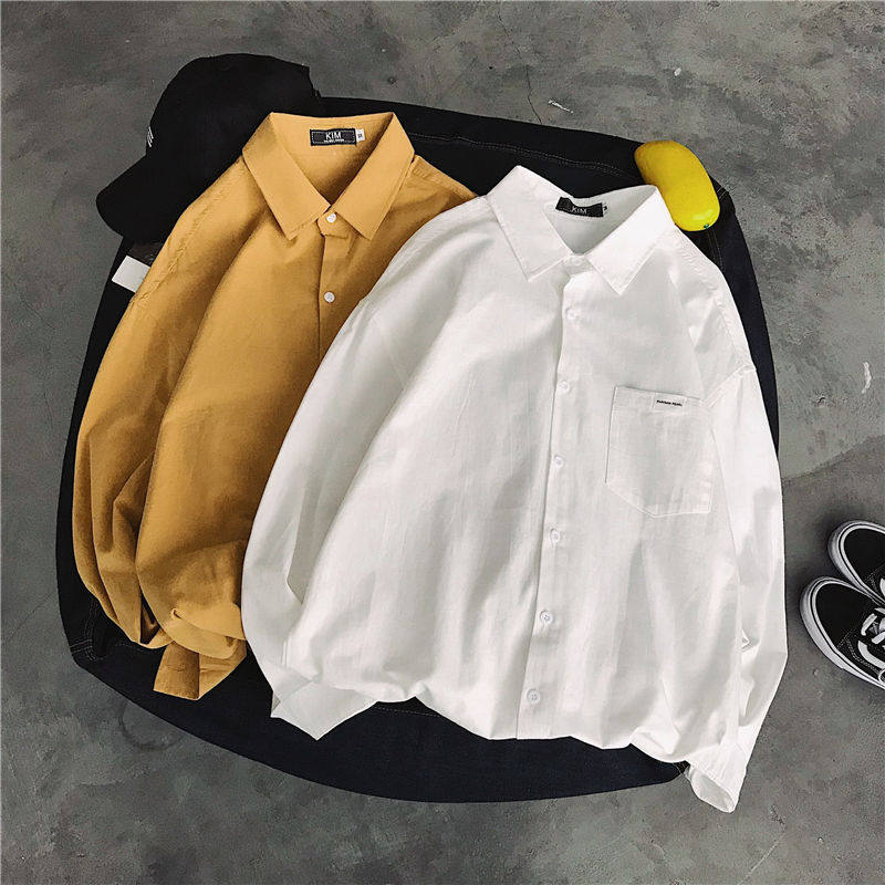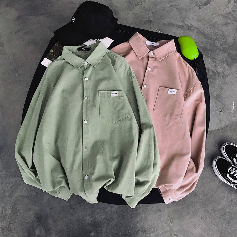 Spring Pure Color Shirt Male Long Sleeve Port Wind Chic Casual Loose Inch student BF Korean version Trend lovers jacket