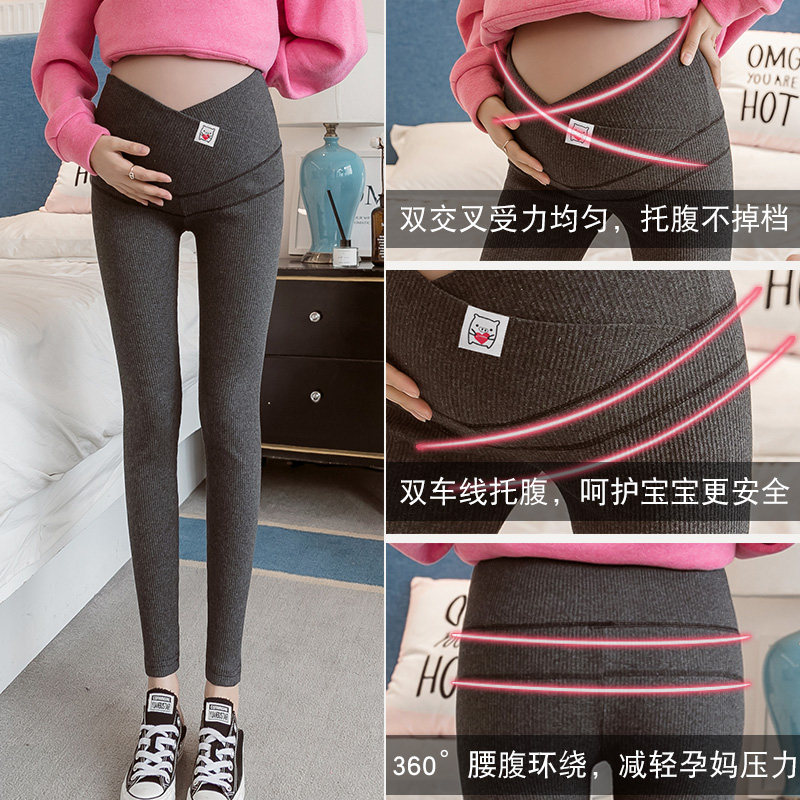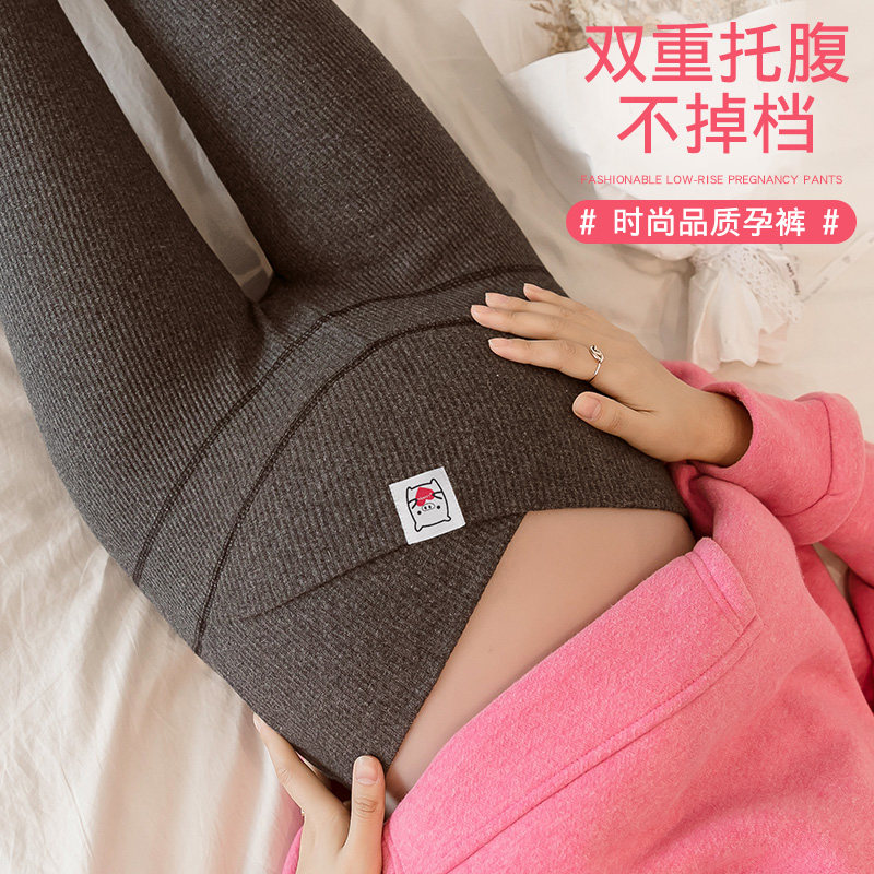 Pregnant women's leggings, spring clothes, pregnant women's trousers, spring trousers, loose, low waist, double belly support