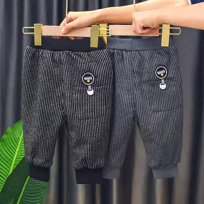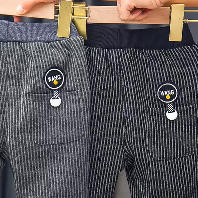 Children's clothing 2020 autumn and winter new boys ' sports pants plus velvet thickened children's casual striped children's long pants tide