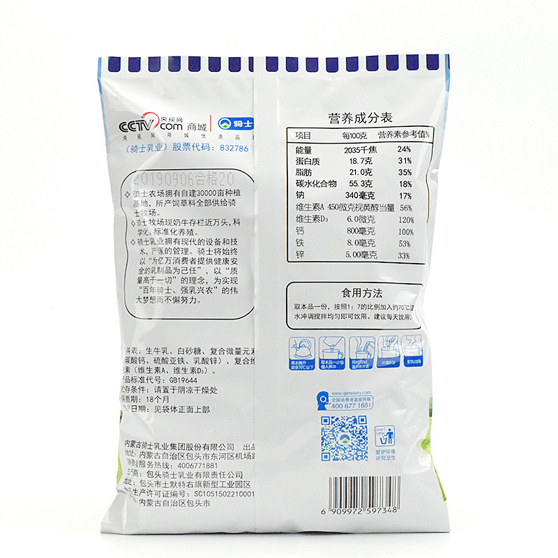 Knight whole fat zinc and calcium milk powder 320 grams of students in the elderly milk powder Adult milk powder Inner Mongolia specialty