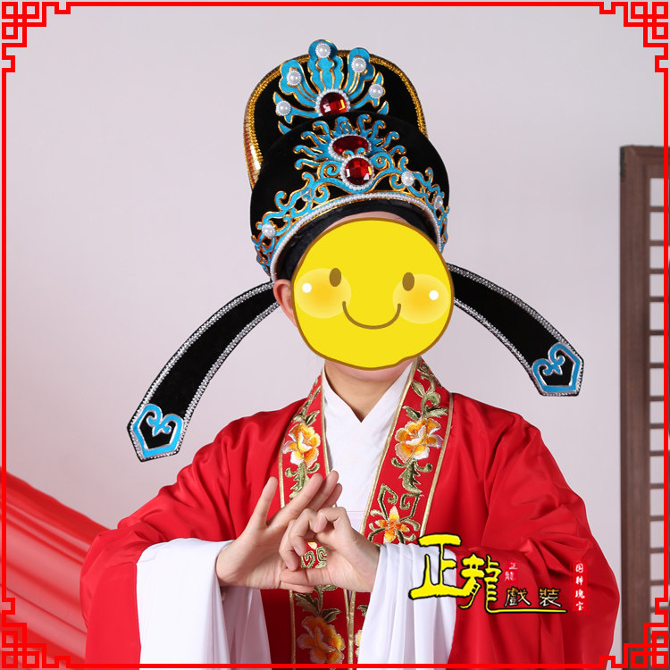 Zhenglong costume Yue opera drama costume helmet hat drama helmet helmet head Xiaosheng hat soft gauze hat xie yuan scarf