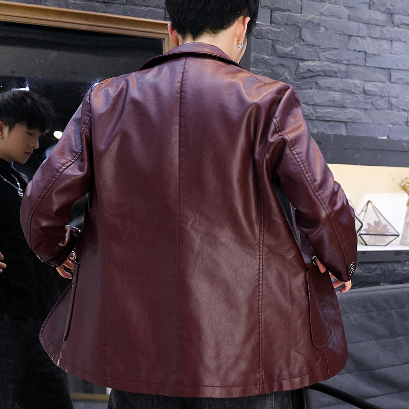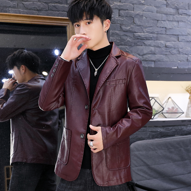 Leather suit men's winter trend leather jacket casual small suit jacket autumn and winter style plus velvet thick leather oil men's coat