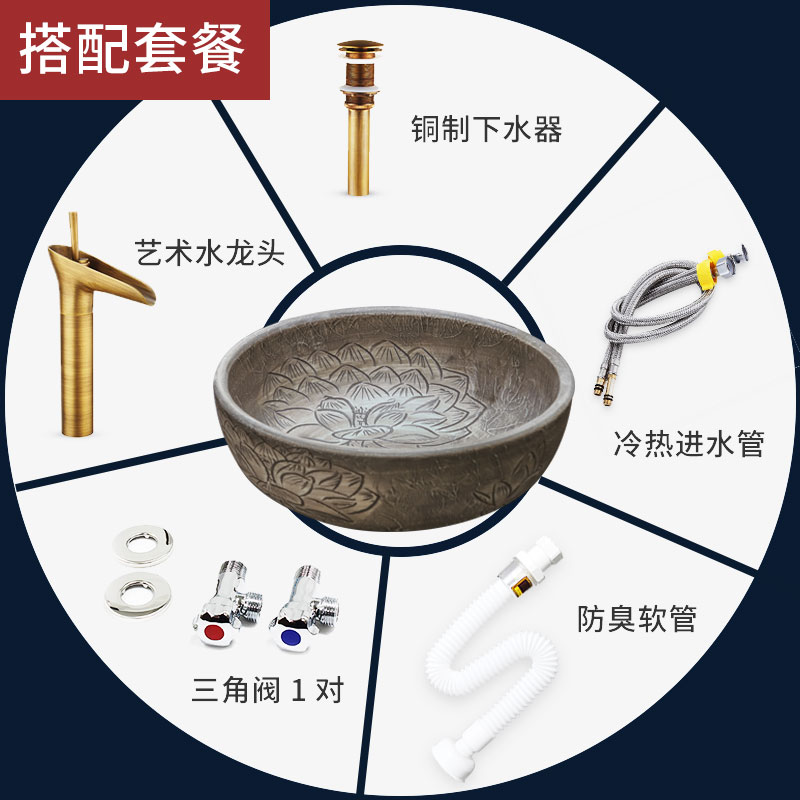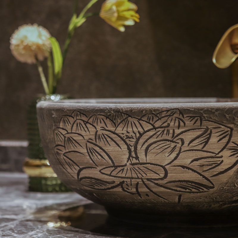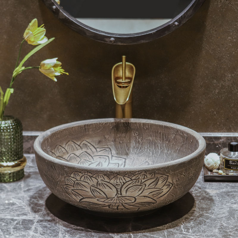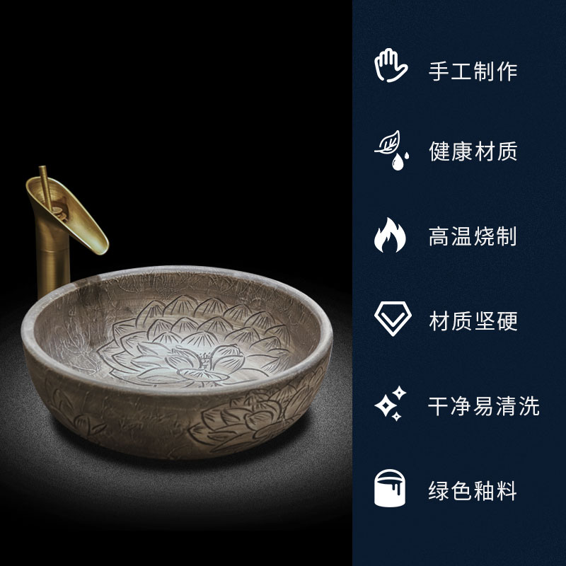Edge painting table basin antique ceramic art wash basin round retro wash basin Chinese basin single sink household