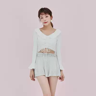 Long sleeve swimsuit female thin belly cover belly conservative student fairy fan small chest gathers skirt two-piece three-piece swimsuit
