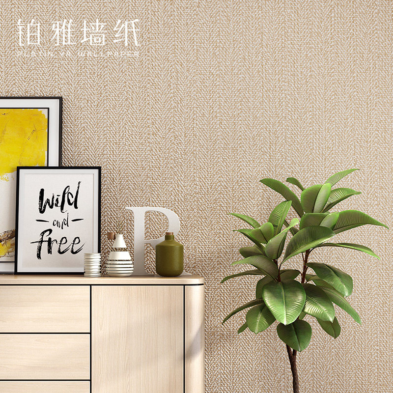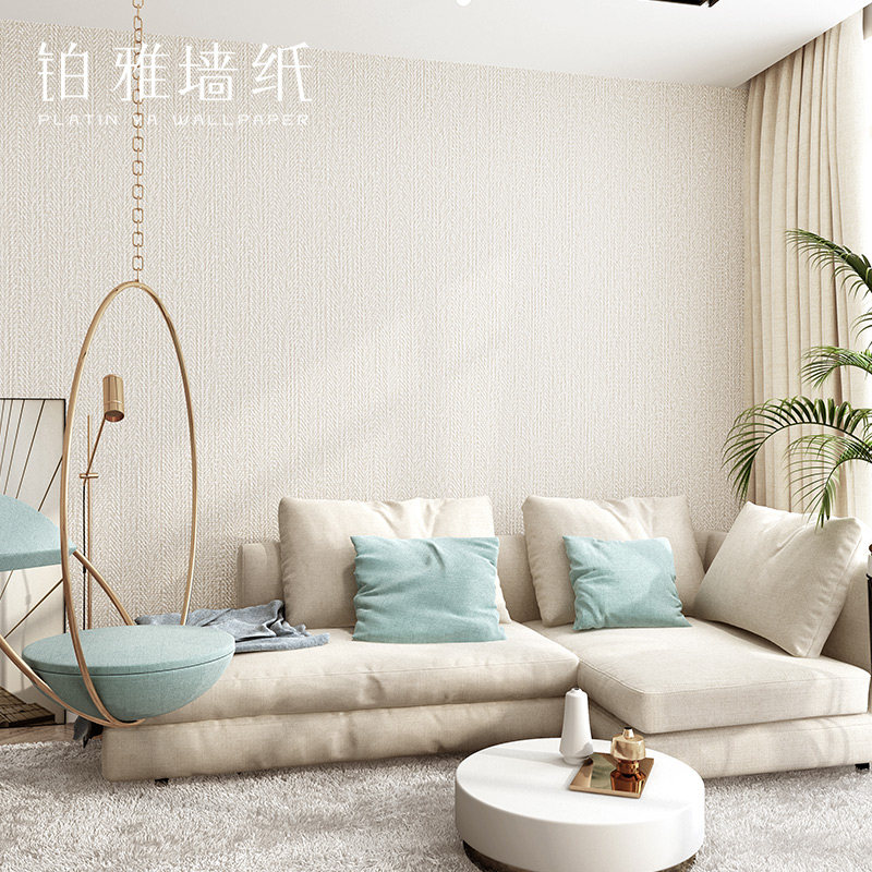 Nordic unwoven fabrics pure colour beige beige blue linen fabric wallpaper living-room wallpaper 2021 new