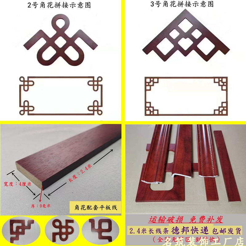 Red solid wood appliquet New Chinese suspended ceiling background wall rims Decorative Lines Smallpox Styling PVC Flat Wire Corner Flowers-Taobao