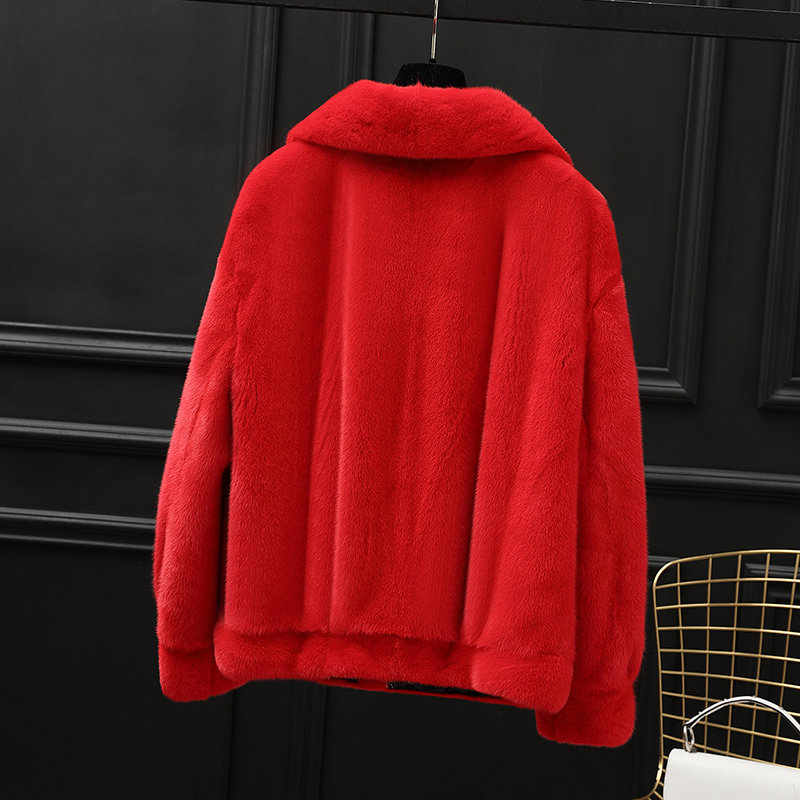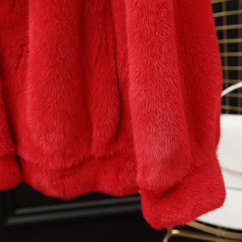 2021 new young mink coat ladies whole mink foreign pie short imported mink fur coat red