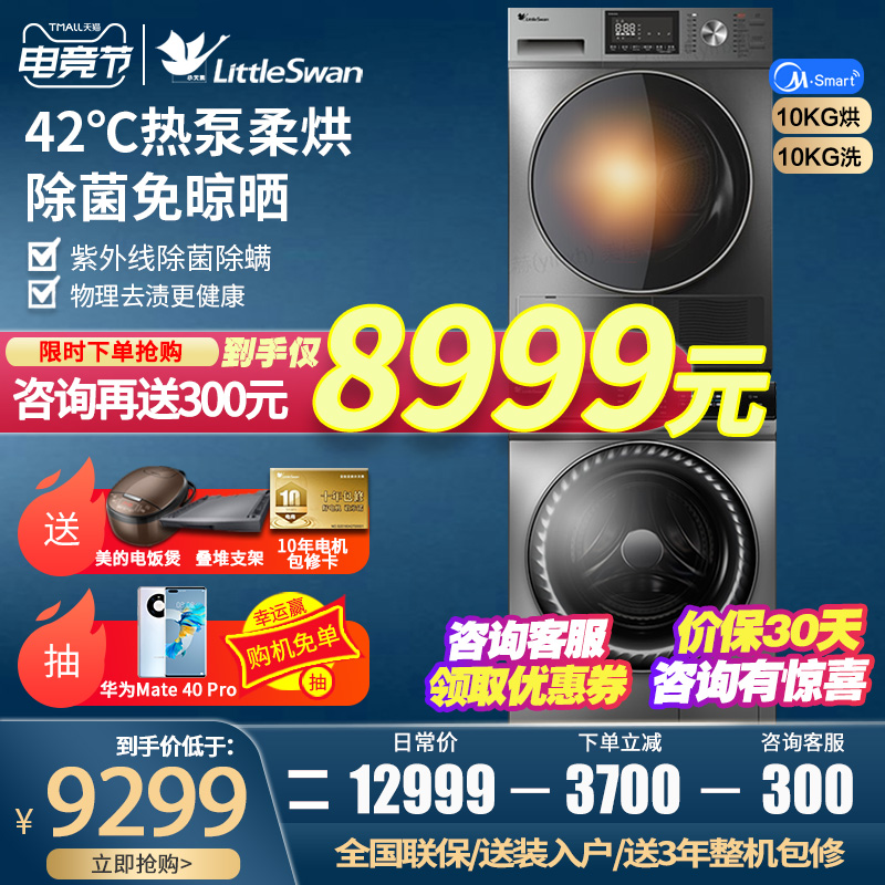 Little swan washing and drying suit Automatic 10KG washing machine heat pump dryer combination Smart home appliances 88 32