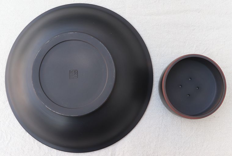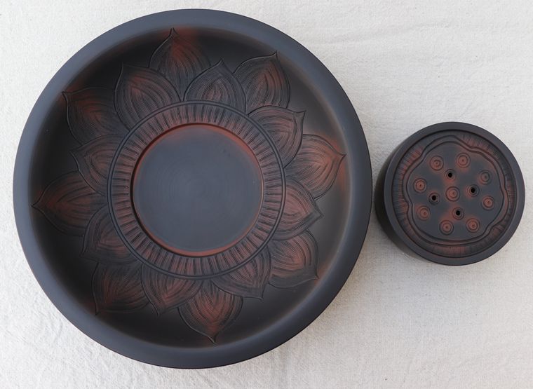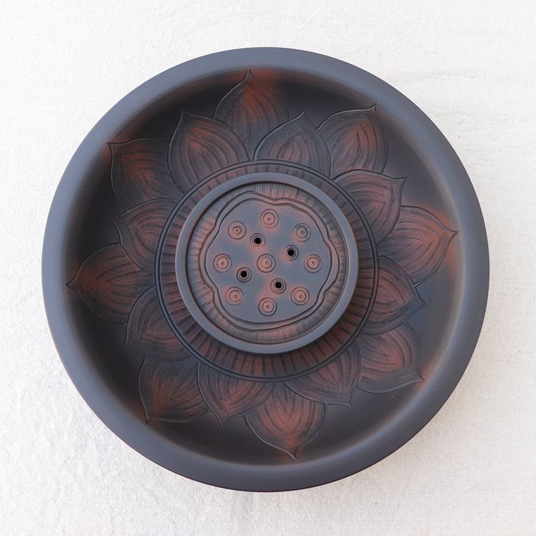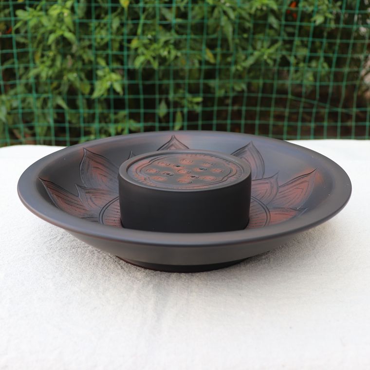 Yunnan Purple pottery tea set Tea tray Tea table Dry bubble table Black pottery matte line carved tea tray
