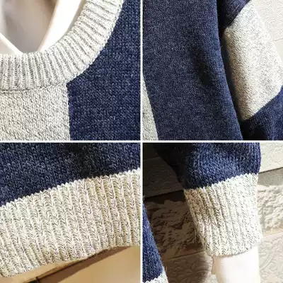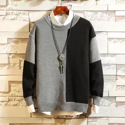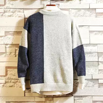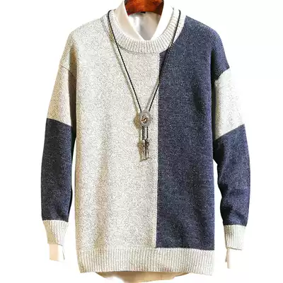 Autumn and winter men's lazy wind stitching round neck sweater loose thickened sweater large size casual bottoming sweater