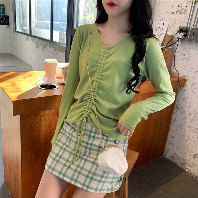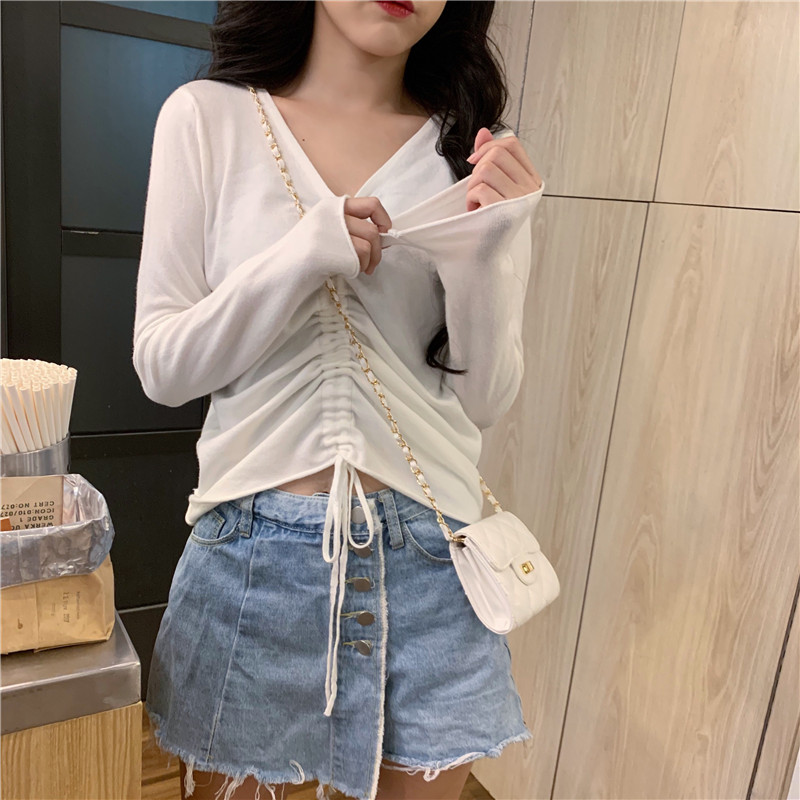 Early autumn mschf long sleeve T-shirt woman 2020 Korean version of the new bf Lazy Wind Loose With Caution Machine Straps Foreign blouses