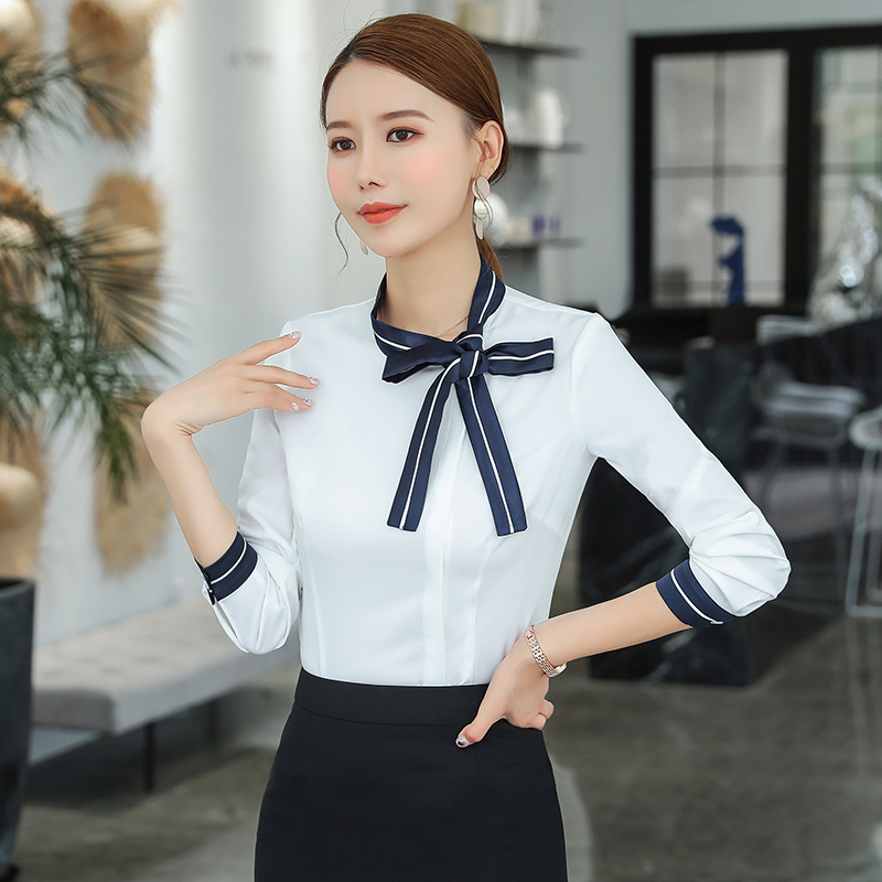 Beautician work clothes autumn and winter jewelry gold shop front desk long-sleeved shirt waiter pedicure technician professional suit female