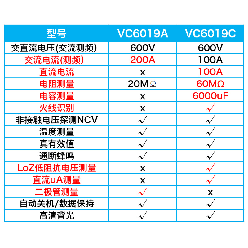 Victory VC6019C AC and DC digital clamp meter Ammeter Universal meter Automatic range capacitance meter Temperature