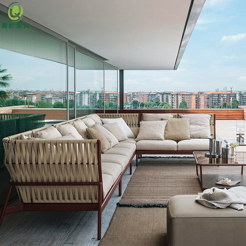 Outdoor sofa balcony garden villa club hotel sofa rattan leisure creative rattan chair soft design sofa