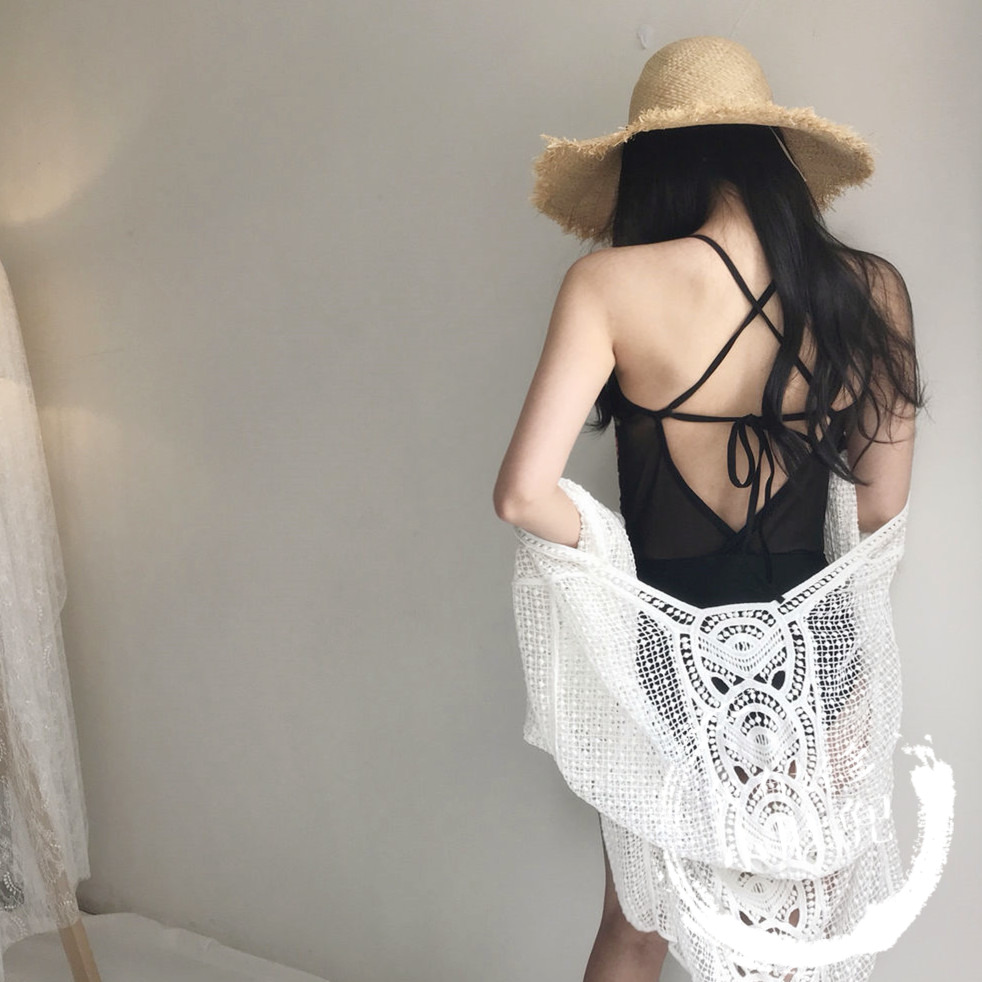 2021 new small breasts gather sexy black lace one body cover belly thin small fragrance wind hot spring swimsuit women