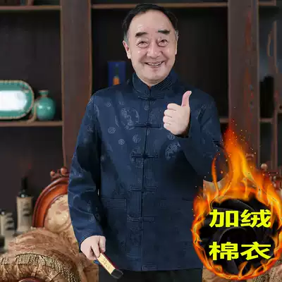 80-year-old grandpa Daishou Tang suit More than 70-year-old elderly men's Chinese style jacket plus velvet cotton coat spring and autumn and winter clothes