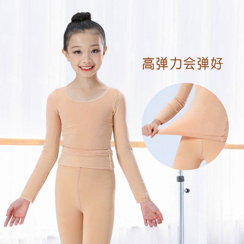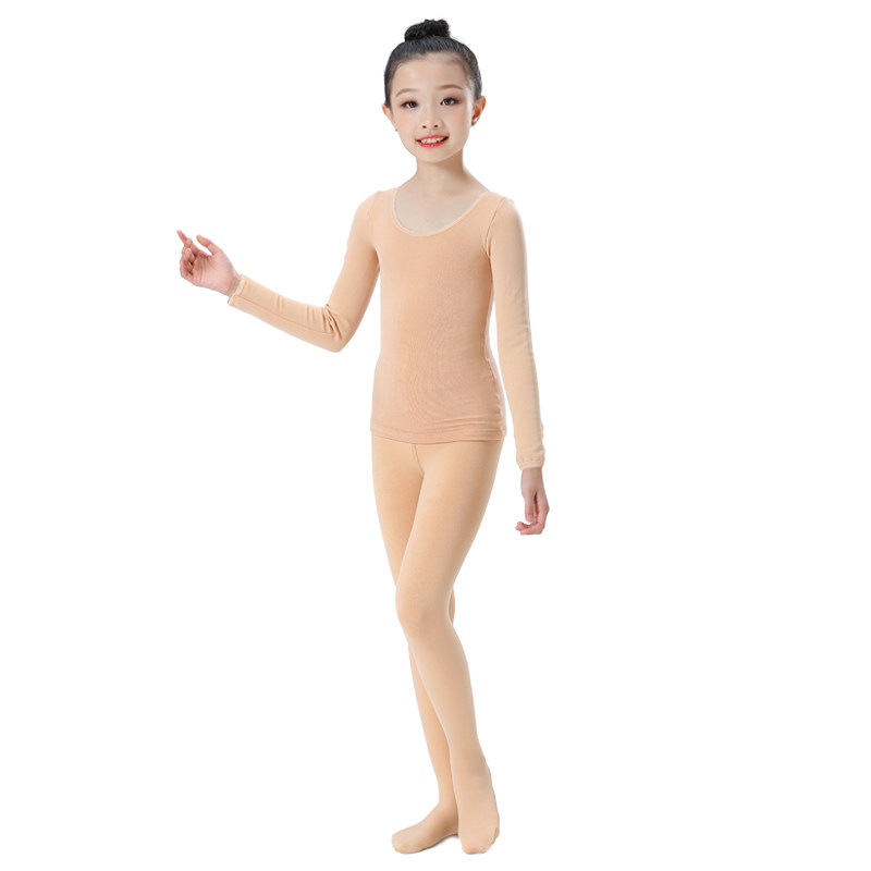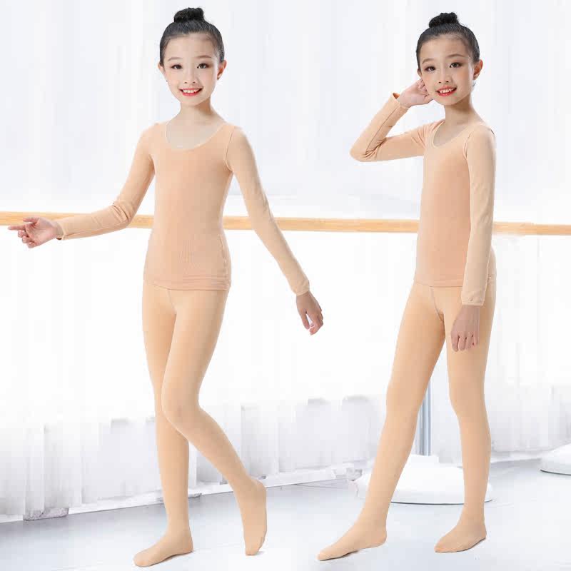 Children's dance suit legging set autumn and winter performance suit invisible flesh color underwear girls plus fleece skin tone tights