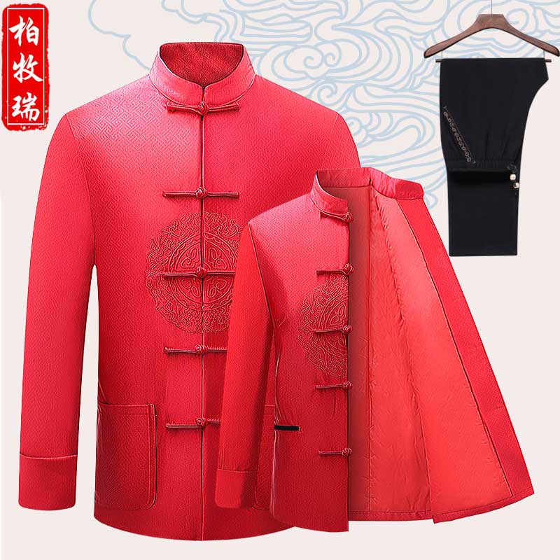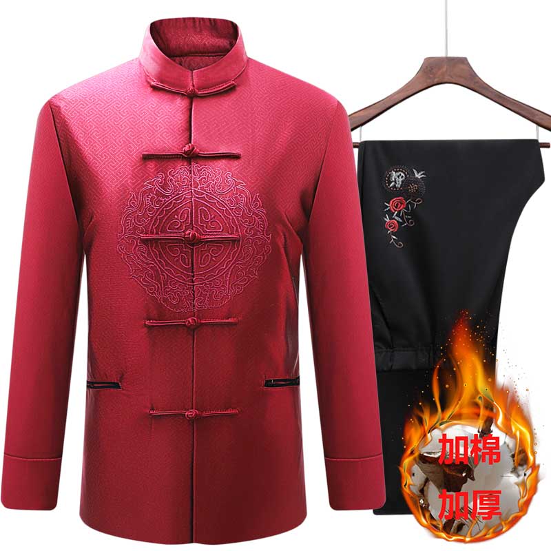 Wine Red Men's Cotton Blouse Wine Red Woman Plus Cotton Blouse China Red Male cotton blouse Chinese red women plus cotton blouse wine red men's cotton suit Wine Red Lady Gcotton Suit China Red Men's Cotton Suit