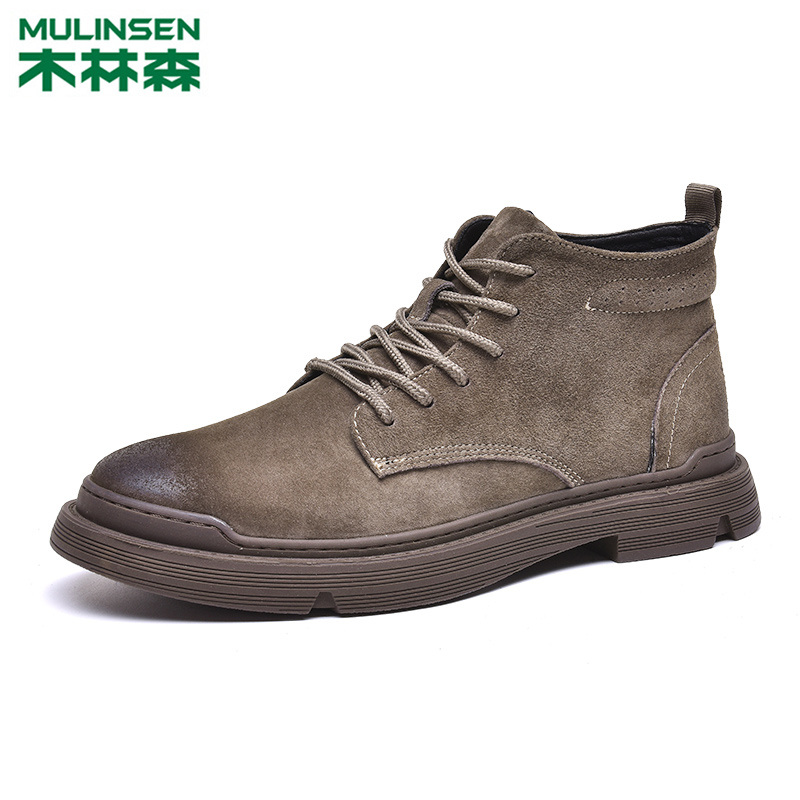 Mulinsen Martin boots high-top tooling shoes short boots in the tube tide men's leather boots men's plus velvet warm cotton shoes winter and autumn
