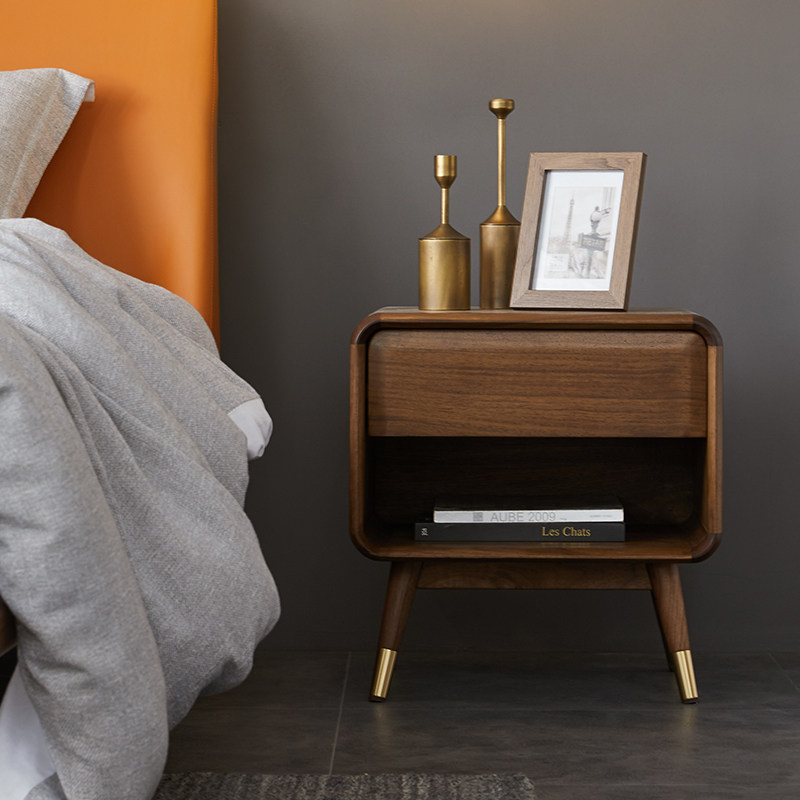 Mummy Furniture North American Black Walnuts Wood Bed Head Cabinet Full Solid Wood Nordic Log Small Family Type Bedroom Disposal Bedside Cabinet