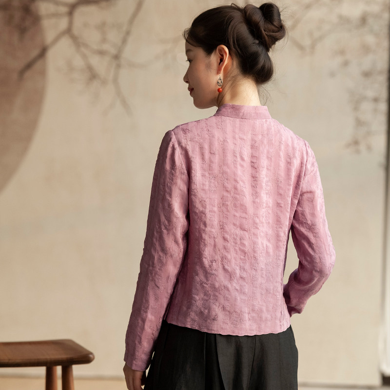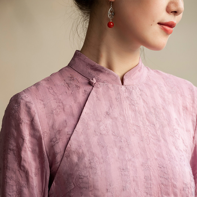 Mo Shang Hua Kai Lan Lai (Poetry Reading under the Osmanthus) Simple Jacquard Cotton Linen Buckle Cheongsam-style Top Women's T-Shirt